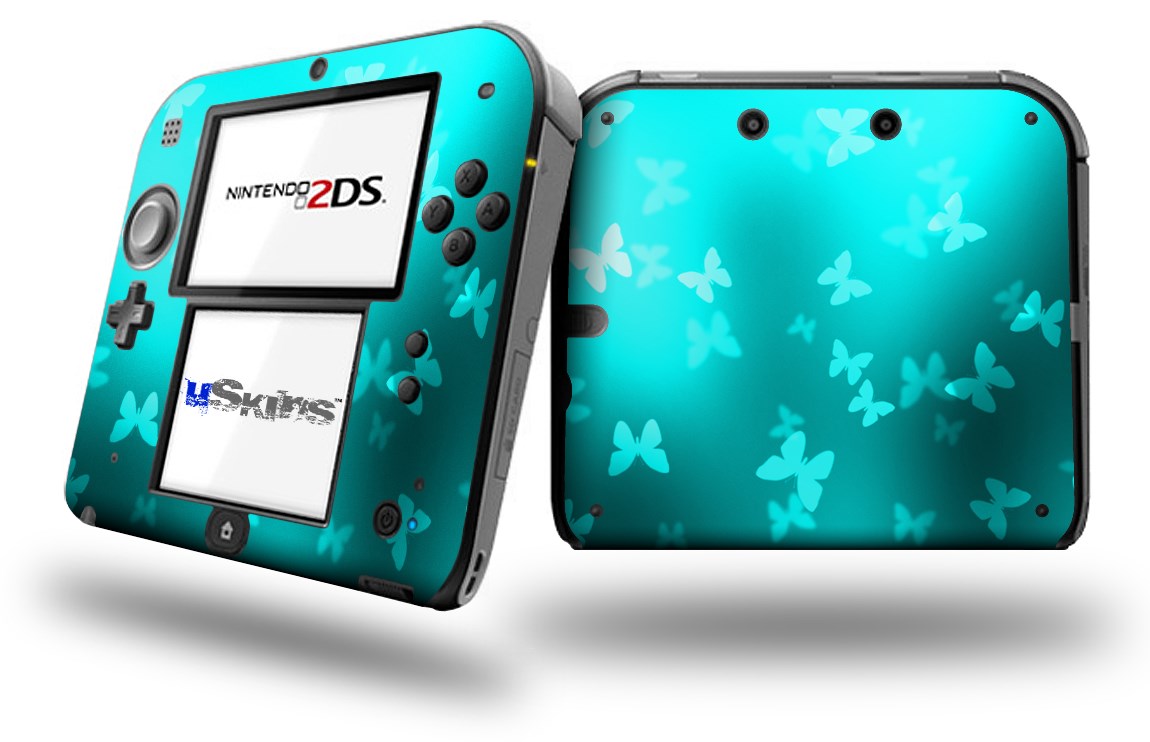 Bokeh Butterflies Neon Teal - Decal Style Vinyl Skin fits Nintendo 2DS - 2DS NOT INCLUDED