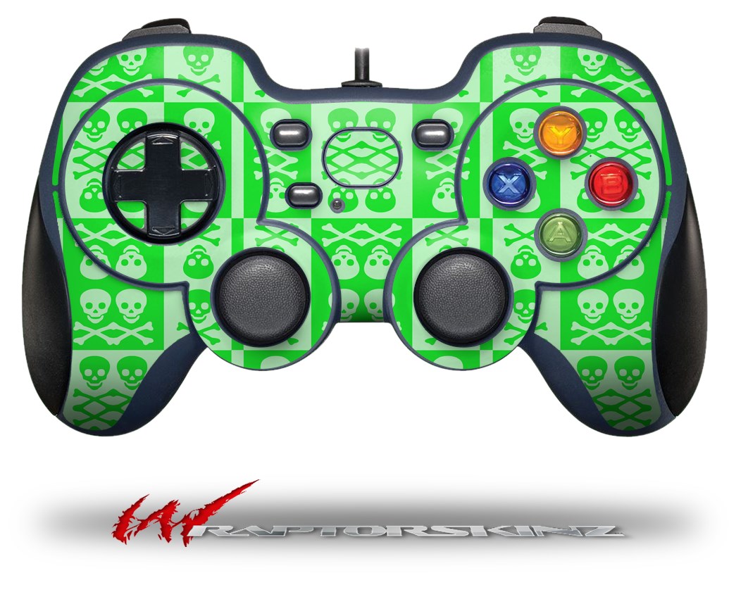 Skull And Crossbones Pattern Green - Decal Style Skin fits Logitech F310 Gamepad Controller (CONTROLLER SOLD SEPARATELY)
