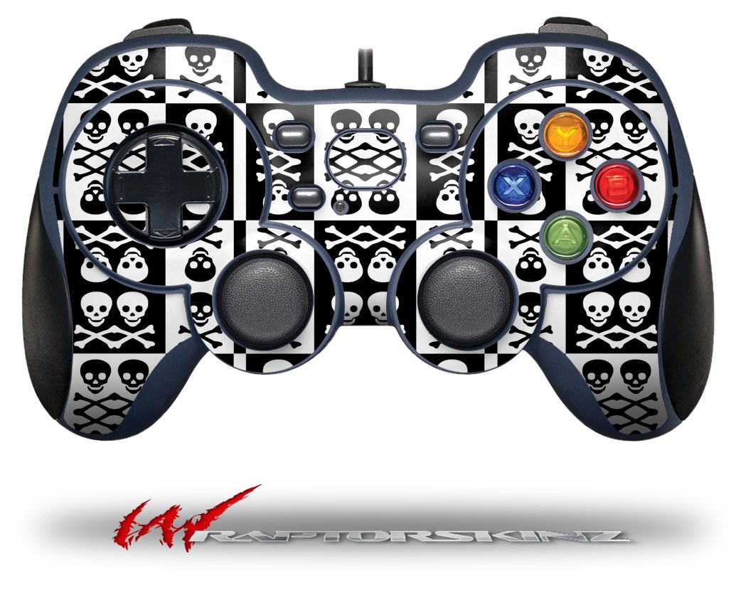 Skull And Crossbones Pattern Bw - Decal Style Skin fits Logitech F310 Gamepad Controller (CONTROLLER SOLD SEPARATELY)