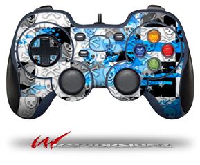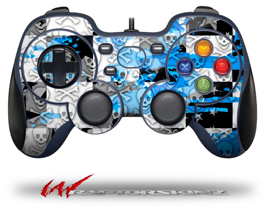 Checker Skull Splatter Blue - Decal Style Skin fits Logitech F310 Gamepad Controller (CONTROLLER SOLD SEPARATELY)