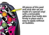 uSkins™ are self adhering vinyl skins that help prevent scratches and look great doing it. Unlike bulky silicon and plastic covers, uSkins are designed to be thin and very tough. uSkins are a composite of two layers of commercial grade materials. The bottom layer is a soft, flexible vinyl with a special removable adhesive that is easily positioned and applied without air bubbles. The bottom layer print with special UV protected, fade resistant inks that deliver superb photo quality designs in vibrant colors. Finally we bond a professional grade laminate over the entire skin adding a glossy protective finish.
