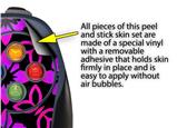 uSkins™ are self adhering vinyl skins that help prevent scratches and look great doing it. Unlike bulky silicon and plastic covers, uSkins are designed to be thin and very tough. uSkins are a composite of two layers of commercial grade materials. The bottom layer is a soft, flexible vinyl with a special removable adhesive that is easily positioned and applied without air bubbles. The bottom layer print with special UV protected, fade resistant inks that deliver superb photo quality designs in vibrant colors. Finally we bond a professional grade laminate over the entire skin adding a glossy protective finish.