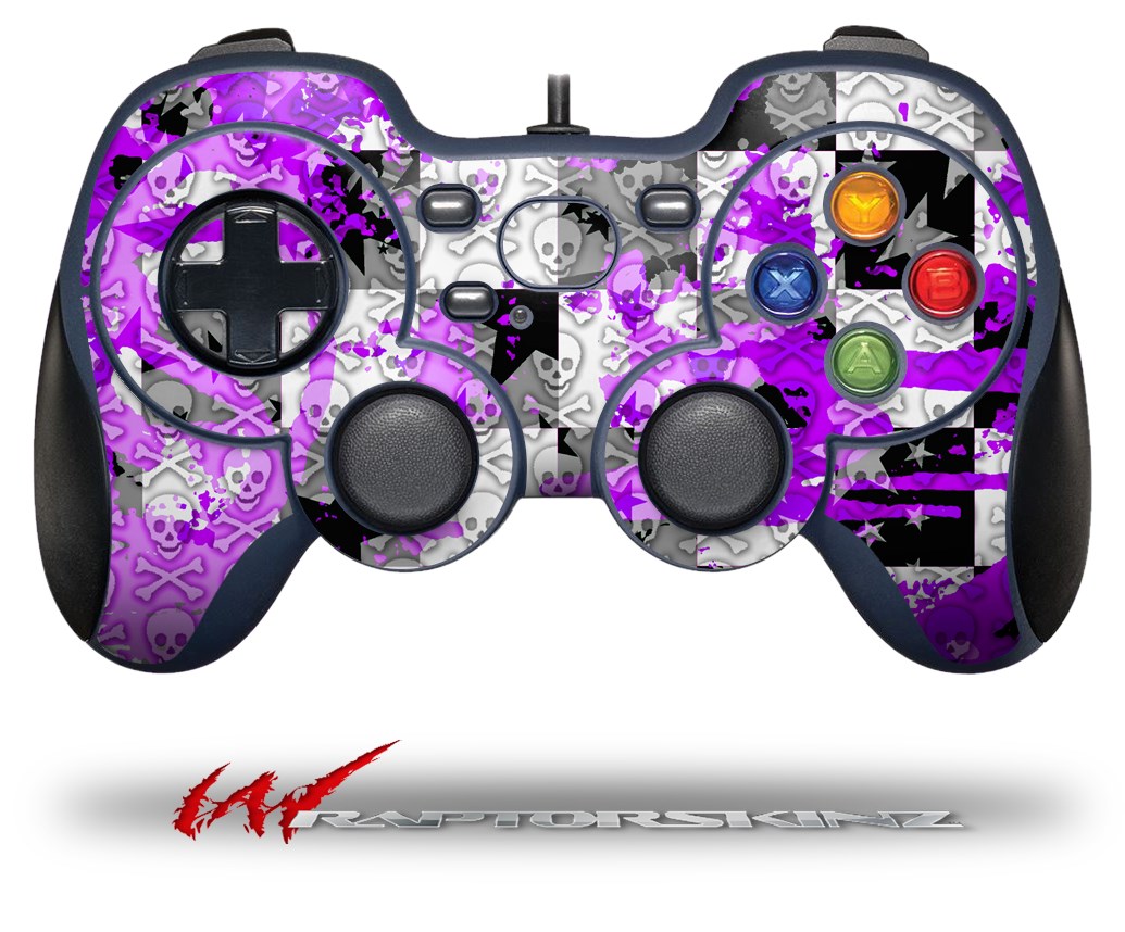 Purple Checker Skull Splatter - Decal Style Skin fits Logitech F310 Gamepad Controller (CONTROLLER SOLD SEPARATELY)