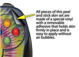 uSkins™ are self adhering vinyl skins that help prevent scratches and look great doing it. Unlike bulky silicon and plastic covers, uSkins are designed to be thin and very tough. uSkins are a composite of two layers of commercial grade materials. The bottom layer is a soft, flexible vinyl with a special removable adhesive that is easily positioned and applied without air bubbles. The bottom layer print with special UV protected, fade resistant inks that deliver superb photo quality designs in vibrant colors. Finally we bond a professional grade laminate over the entire skin adding a glossy protective finish.