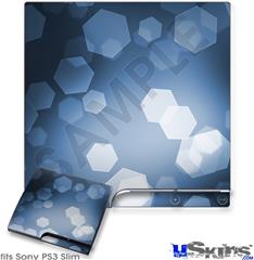 Decal Skin compatible with Sony PS3 Slim Bokeh Hex Blue