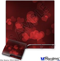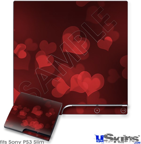 Decal Skin compatible with Sony PS3 Slim Bokeh Hearts Red