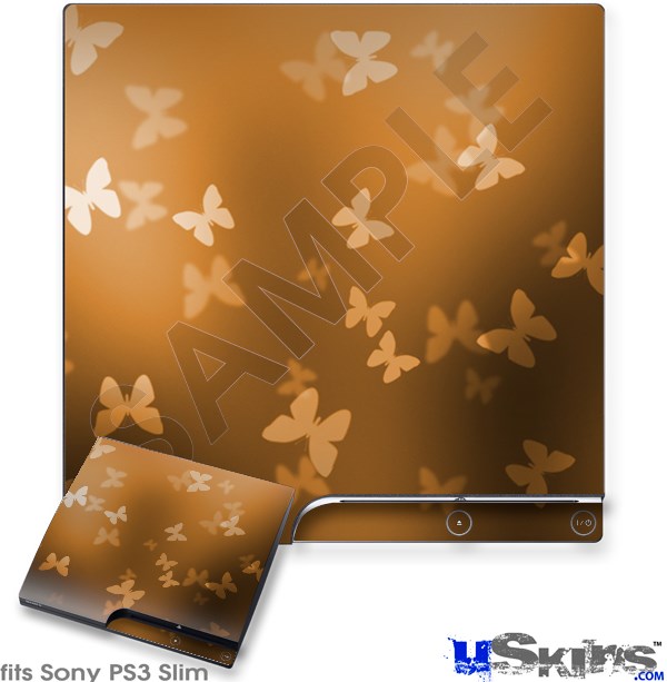 Decal Skin compatible with Sony PS3 Slim Bokeh Butterflies Orange