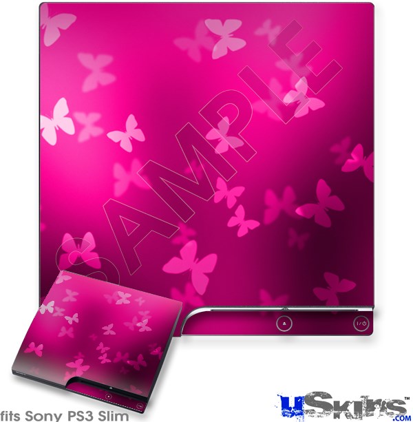 Decal Skin compatible with Sony PS3 Slim Bokeh Butterflies Hot Pink