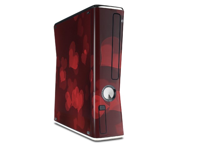 Bokeh Hearts Red Decal Style Skin for XBOX 360 Slim Vertical