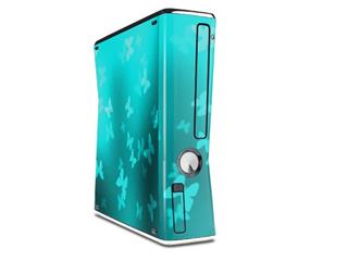 Bokeh Butterflies Neon Teal Decal Style Skin for XBOX 360 Slim Vertical