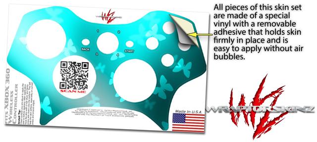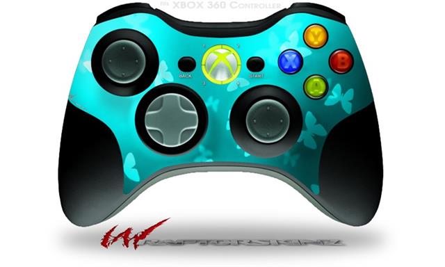 XBOX 360 Wireless Controller Decal Style Skin - Bokeh Butterflies Neon Teal (CONTROLLER NOT INCLUDED)