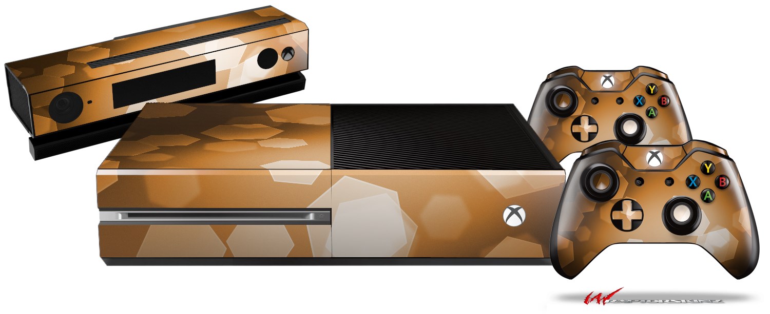 Bokeh Hex Orange - Holiday Bundle Decal Style Skin fits XBOX One Console Original, Kinect and 2 Controllers (XBOX SYSTEM NOT INCLUDED)