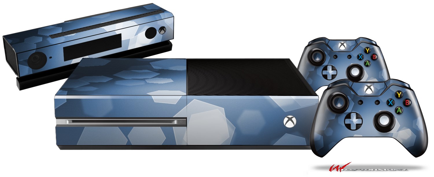 Bokeh Hex Blue - Holiday Bundle Decal Style Skin fits XBOX One Console Original, Kinect and 2 Controllers (XBOX SYSTEM NOT INCLUDED)