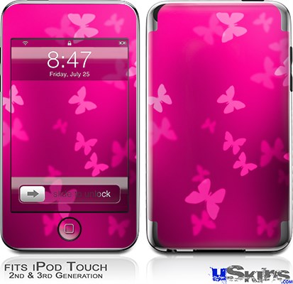 iPod Touch 2G & 3G Skin - Bokeh Butterflies Hot Pink