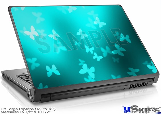Laptop Skin (Large) - Bokeh Butterflies Neon Teal