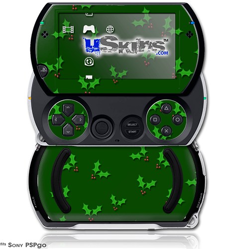 Holly Leaves on Green - Decal Style Skins (fits Sony PSPgo)