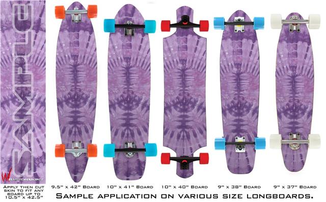 Our longboard skins are made so that one size fits boards up to 10” wide x 42” long. This means after applying the skin it you will trimming to fit you’re the shape of your board with a sharp utility knife.