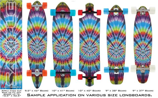 Our longboard skins are made so that one size fits boards up to 10” wide x 42” long. This means after applying the skin it you will trimming to fit you’re the shape of your board with a sharp utility knife.