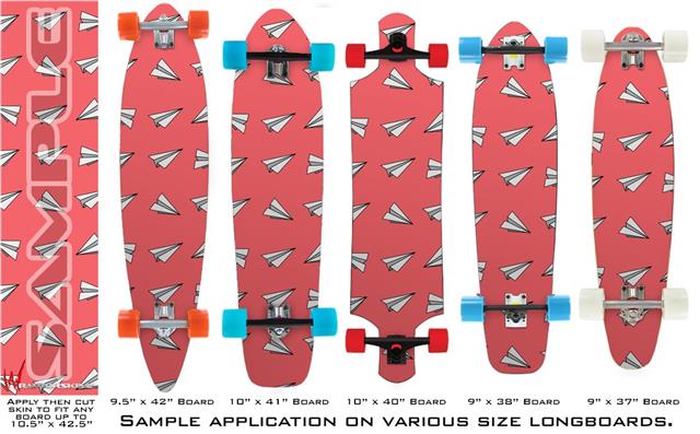 Our longboard skins are made so that one size fits boards up to 10” wide x 42” long. This means after applying the skin it you will trimming to fit you’re the shape of your board with a sharp utility knife.