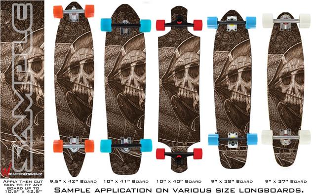 Our longboard skins are made so that one size fits boards up to 10” wide x 42” long. This means after applying the skin it you will trimming to fit you’re the shape of your board with a sharp utility knife.