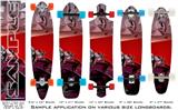 Our longboard skins are made so that one size fits boards up to 10” wide x 42” long. This means after applying the skin it you will trimming to fit you’re the shape of your board with a sharp utility knife.