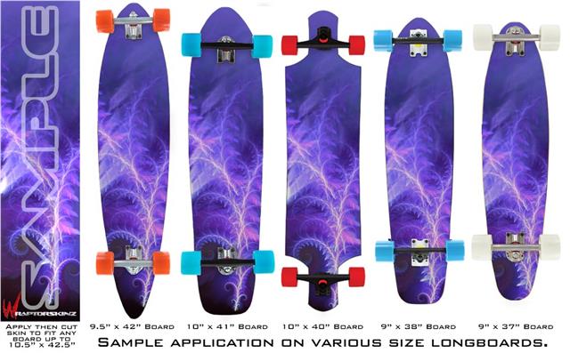 Our longboard skins are made so that one size fits boards up to 10” wide x 42” long. This means after applying the skin it you will trimming to fit you’re the shape of your board with a sharp utility knife.