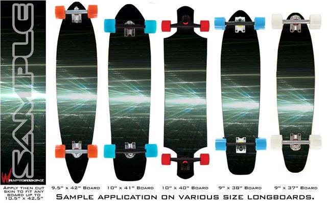 Our longboard skins are made so that one size fits boards up to 10” wide x 42” long. This means after applying the skin it you will trimming to fit you’re the shape of your board with a sharp utility knife.