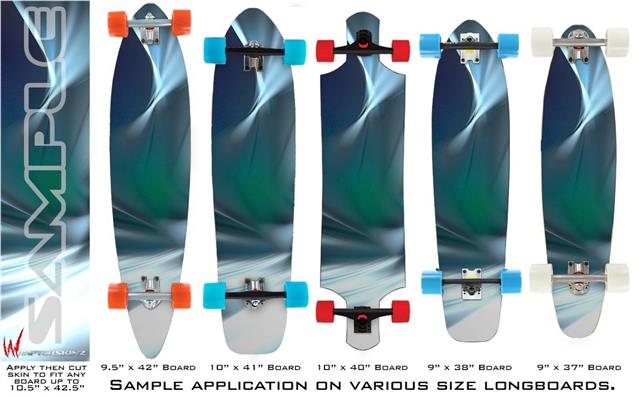 Our longboard skins are made so that one size fits boards up to 10” wide x 42” long. This means after applying the skin it you will trimming to fit you’re the shape of your board with a sharp utility knife.