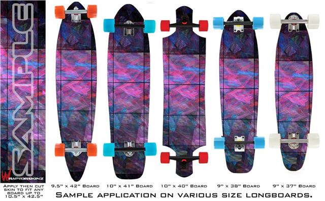 Our longboard skins are made so that one size fits boards up to 10” wide x 42” long. This means after applying the skin it you will trimming to fit you’re the shape of your board with a sharp utility knife.