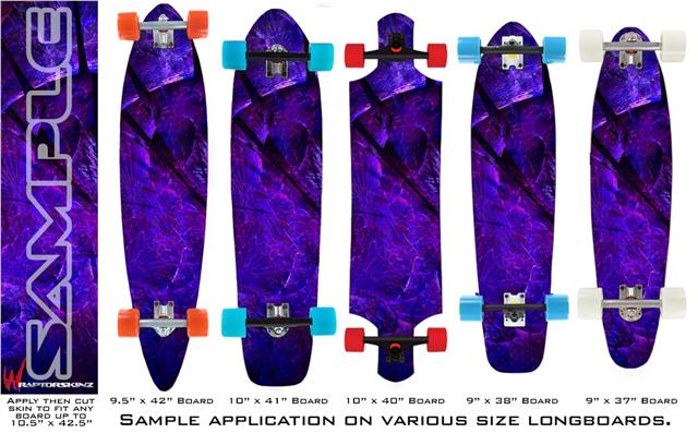 Our longboard skins are made so that one size fits boards up to 10” wide x 42” long. This means after applying the skin it you will trimming to fit you’re the shape of your board with a sharp utility knife.