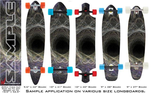 Our longboard skins are made so that one size fits boards up to 10” wide x 42” long. This means after applying the skin it you will trimming to fit you’re the shape of your board with a sharp utility knife.