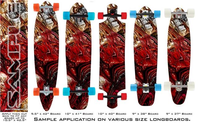 Our longboard skins are made so that one size fits boards up to 10” wide x 42” long. This means after applying the skin it you will trimming to fit you’re the shape of your board with a sharp utility knife.