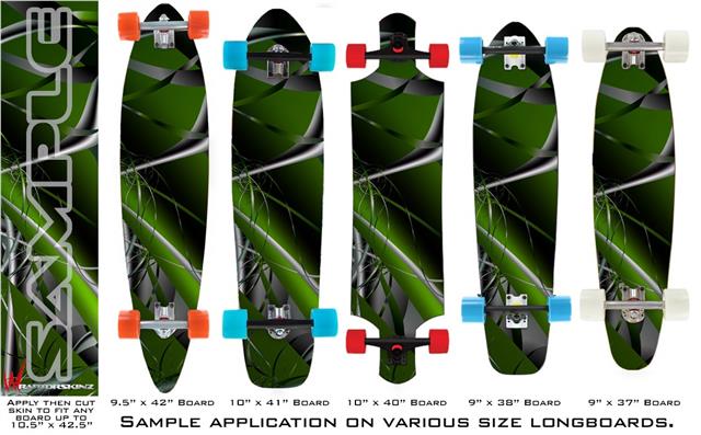 Our longboard skins are made so that one size fits boards up to 10” wide x 42” long. This means after applying the skin it you will trimming to fit you’re the shape of your board with a sharp utility knife.
