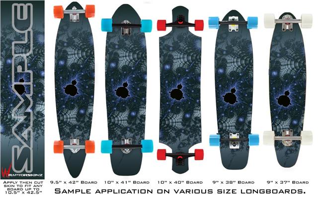 Our longboard skins are made so that one size fits boards up to 10” wide x 42” long. This means after applying the skin it you will trimming to fit you’re the shape of your board with a sharp utility knife.