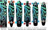 Our longboard skins are made so that one size fits boards up to 10” wide x 42” long. This means after applying the skin it you will trimming to fit you’re the shape of your board with a sharp utility knife.