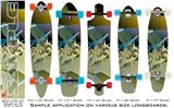 Our longboard skins are made so that one size fits boards up to 10” wide x 42” long. This means after applying the skin it you will trimming to fit you’re the shape of your board with a sharp utility knife.