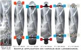 Our longboard skins are made so that one size fits boards up to 10” wide x 42” long. This means after applying the skin it you will trimming to fit you’re the shape of your board with a sharp utility knife.