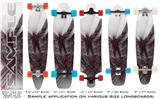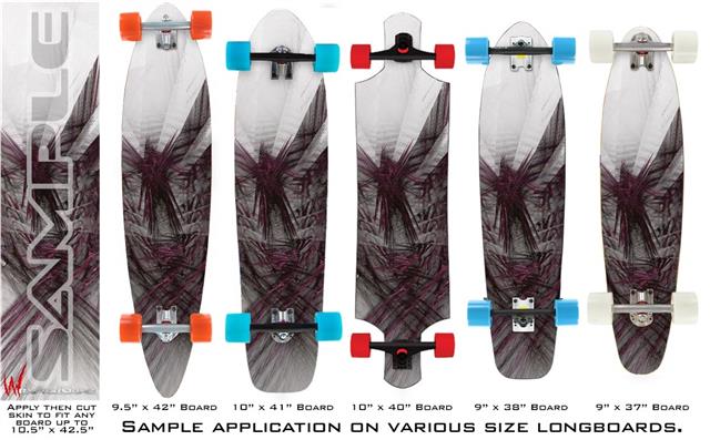 Our longboard skins are made so that one size fits boards up to 10” wide x 42” long. This means after applying the skin it you will trimming to fit you’re the shape of your board with a sharp utility knife.