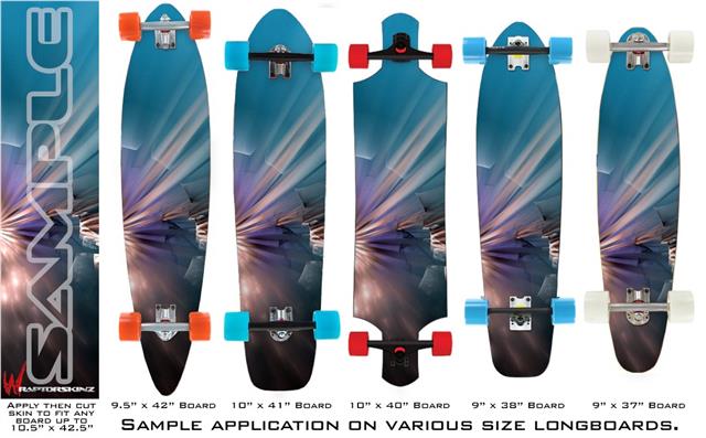 Our longboard skins are made so that one size fits boards up to 10” wide x 42” long. This means after applying the skin it you will trimming to fit you’re the shape of your board with a sharp utility knife.