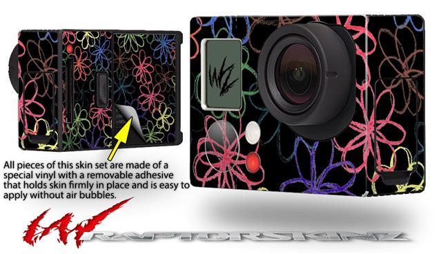 Kearas Flowers on Black - Decal Style Skin fits GoPro Hero 3+ Camera (GOPRO NOT INCLUDED)