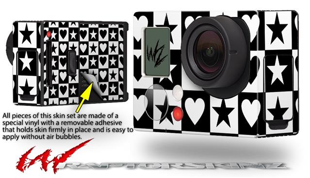 Hearts And Stars Black and White - Decal Style Skin fits GoPro Hero 3+ Camera (GOPRO NOT INCLUDED)