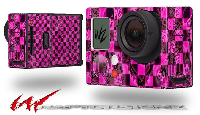 Pink Checkerboard Sketches - Decal Style Skin fits GoPro Hero 3+ Camera (GOPRO NOT INCLUDED)