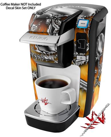 Decal Style Vinyl Skin compatible with Keurig K10 / K15 Mini Plus Coffee Makers Chrome Skull on Fire (KEURIG NOT INCLUDED)