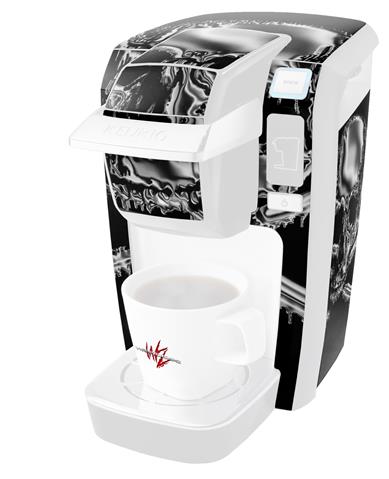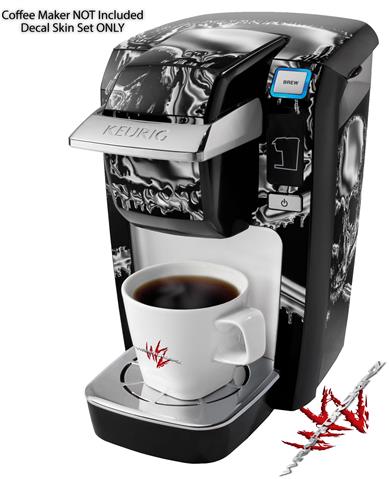 Decal Style Vinyl Skin compatible with Keurig K10 / K15 Mini Plus Coffee Makers Chrome Skull on Black (KEURIG NOT INCLUDED)