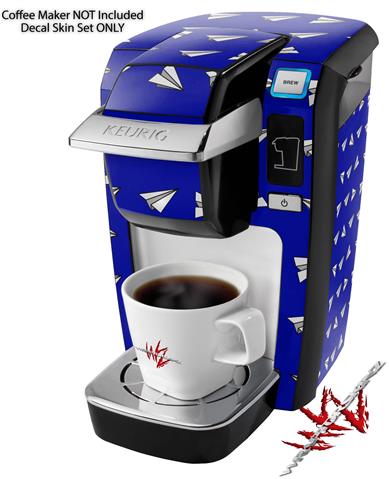 Decal Style Vinyl Skin compatible with Keurig K10 / K15 Mini Plus Coffee Makers Paper Planes Royal Blue (KEURIG NOT INCLUDED)