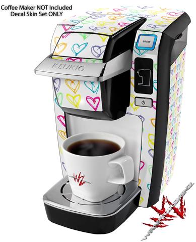 Decal Style Vinyl Skin compatible with Keurig K10 / K15 Mini Plus Coffee Makers Kearas Hearts White (KEURIG NOT INCLUDED)