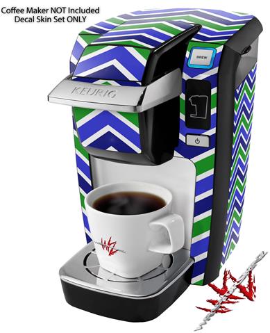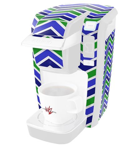 Decal Style Vinyl Skin compatible with Keurig K10 / K15 Mini Plus Coffee Makers Zig Zag Blue Green (KEURIG NOT INCLUDED)
