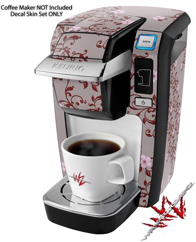 Decal Style Vinyl Skin compatible with Keurig K10 / K15 Mini Plus Coffee Makers Victorian Design Red (KEURIG NOT INCLUDED)