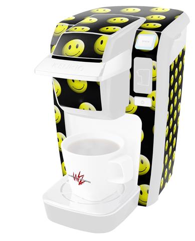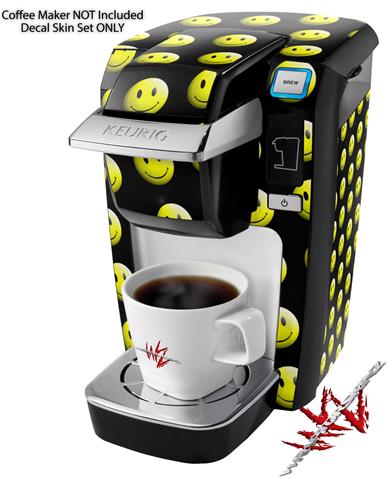 Decal Style Vinyl Skin compatible with Keurig K10 / K15 Mini Plus Coffee Makers Smileys on Black (KEURIG NOT INCLUDED)