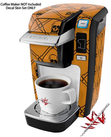 Decal Style Vinyl Skin compatible with Keurig K10 / K15 Mini Plus Coffee Makers Halloween Skull and Bones (KEURIG NOT INCLUDED)
